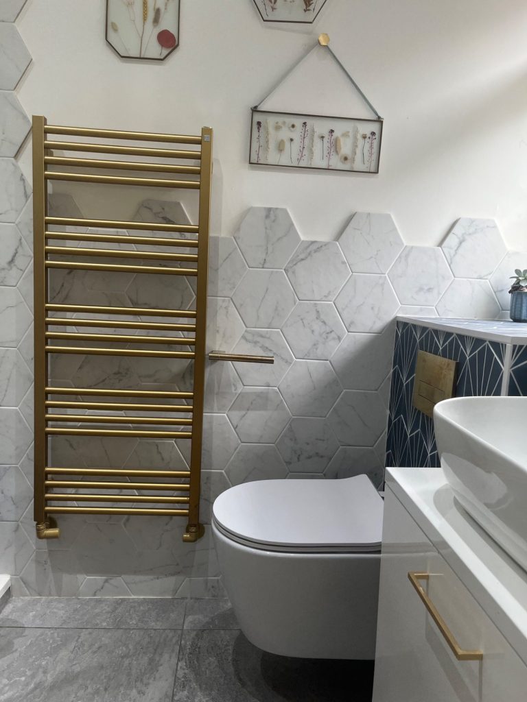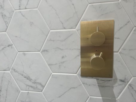 Here we extended the current ensuite to create a high end finish with a walk-in shower. Brushed brass themed throughout with specifically sourced tiling to create a super looking finish.