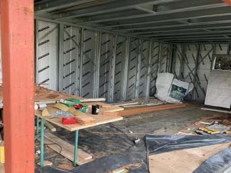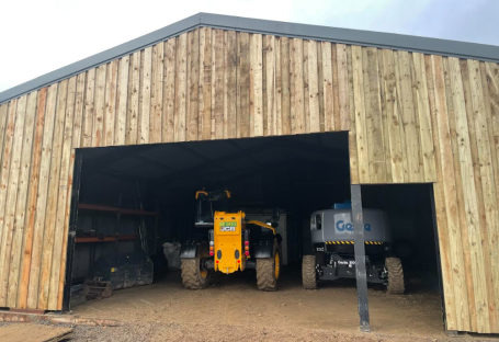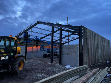 After installing the extensive groundworks for this barn the pre fabricated steel structure arrived on site and was installed from start to finish in one short week. We added the concrete side walls to create extra security.